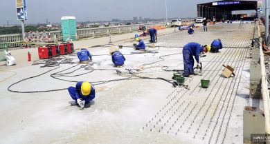 Để hoàn thành đúng tiến độ, hàng trăm công nhân thi công dự án sửa chữa mặt cầu Thăng Long (Hà Nội) luôn phải căng mình làm việc dưới thời tiết khắc nghiệt để hàn 1,5 triệu chiếc đinh lên mặt cầu Thăng Long.